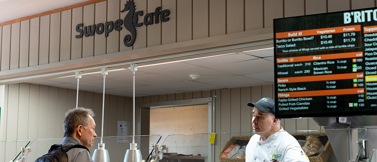 Swope Café is available for employees and open to the public. Hours vary, please view the Café Weekly Specials page for details. Swope Café has moved upstairs for the season, so please join us in the Dining Hall.