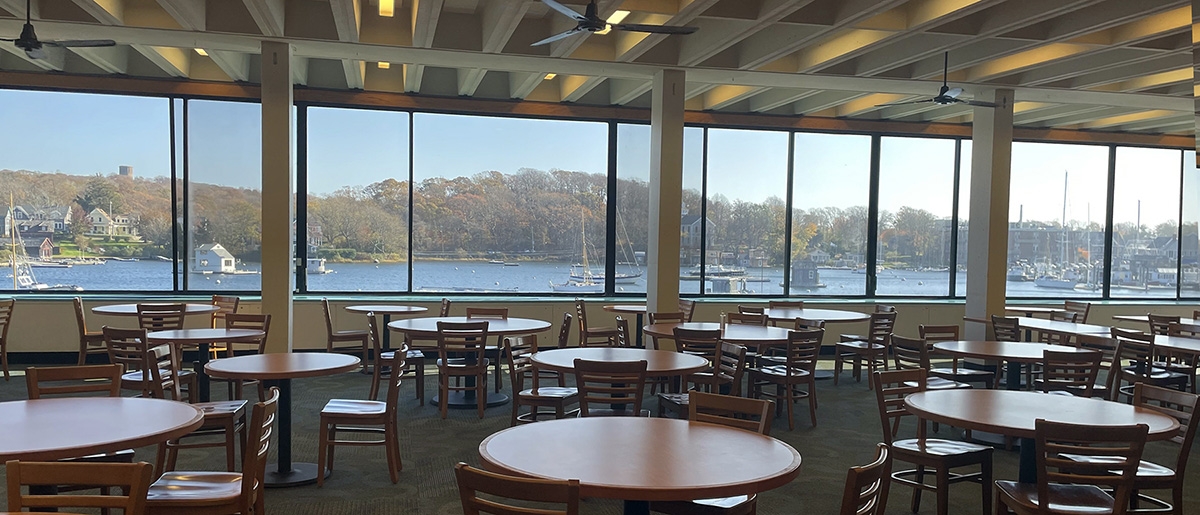 The Main Dining Hall is open for three meals a day while there are students in residence and is located on the second floor of the Swope Center. Open seven days a week, but hours vary depending on season, holidays and how many people we have in residence. Details can be found on the Dining Hall Meals page.