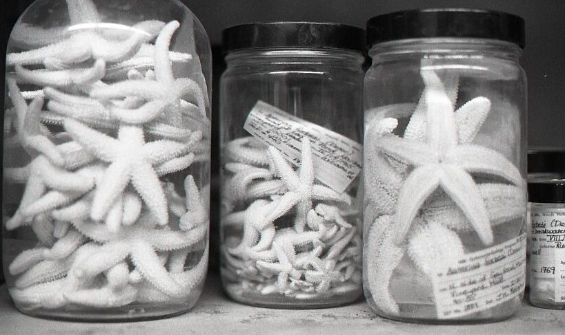 Sea star specimens in jars